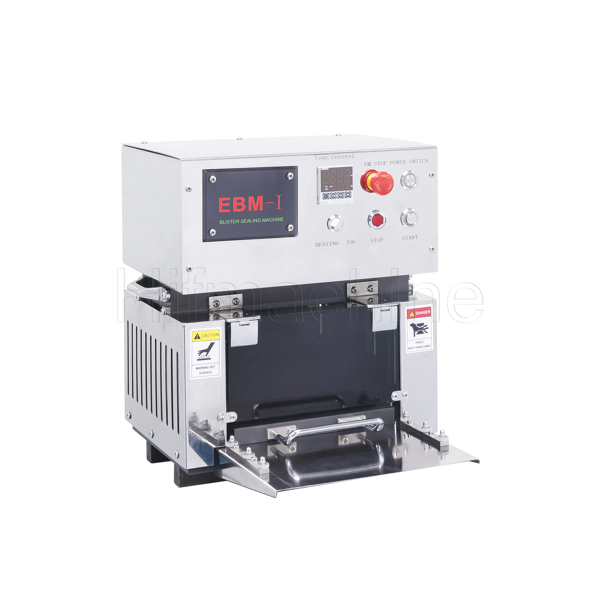 - EBM-I is a pure electric blister sealing equipment, without an air compressor, to complete the blister with larger sealing size and increase the output by 5 times.