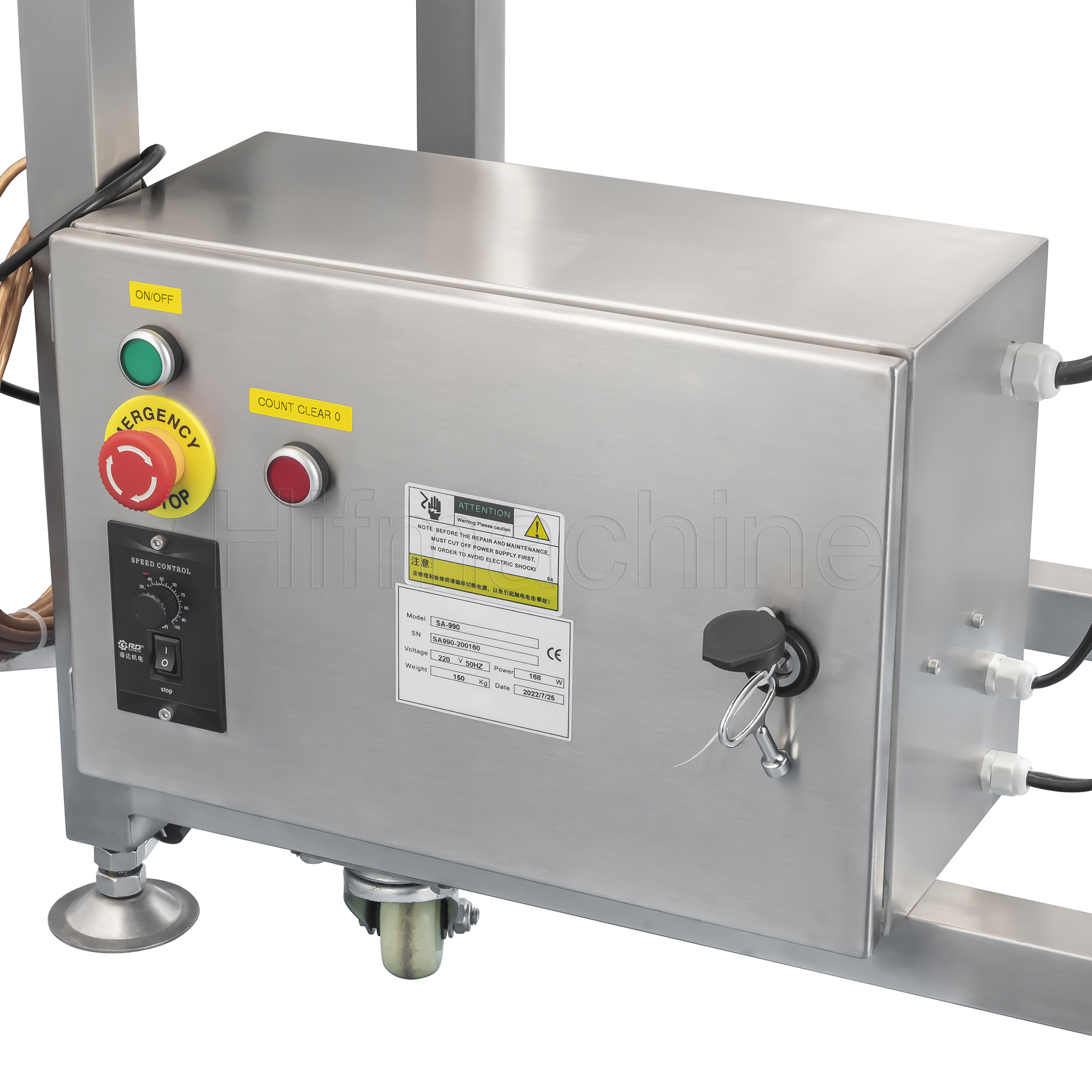 The metal detectors produced by our company are used to detect metal foreign matter mixed in the production process of food, medicine, cosmetics, textiles, etc., to improve product safety and product quality. This machine has high detection accuracy, stable performance, simple operation, and convenient maintenance. It adopts intelligent recognition technology and has self-learning and memory functions. It can automatically recognize and remember product characteristics, and effectively eliminate interference caused by various “product effects”. The machine is dustproof and waterproof, complies with IP-66/IP-65 international certification, is vibration-resistant and noise-absorbing, and can adapt to harsh working environments.