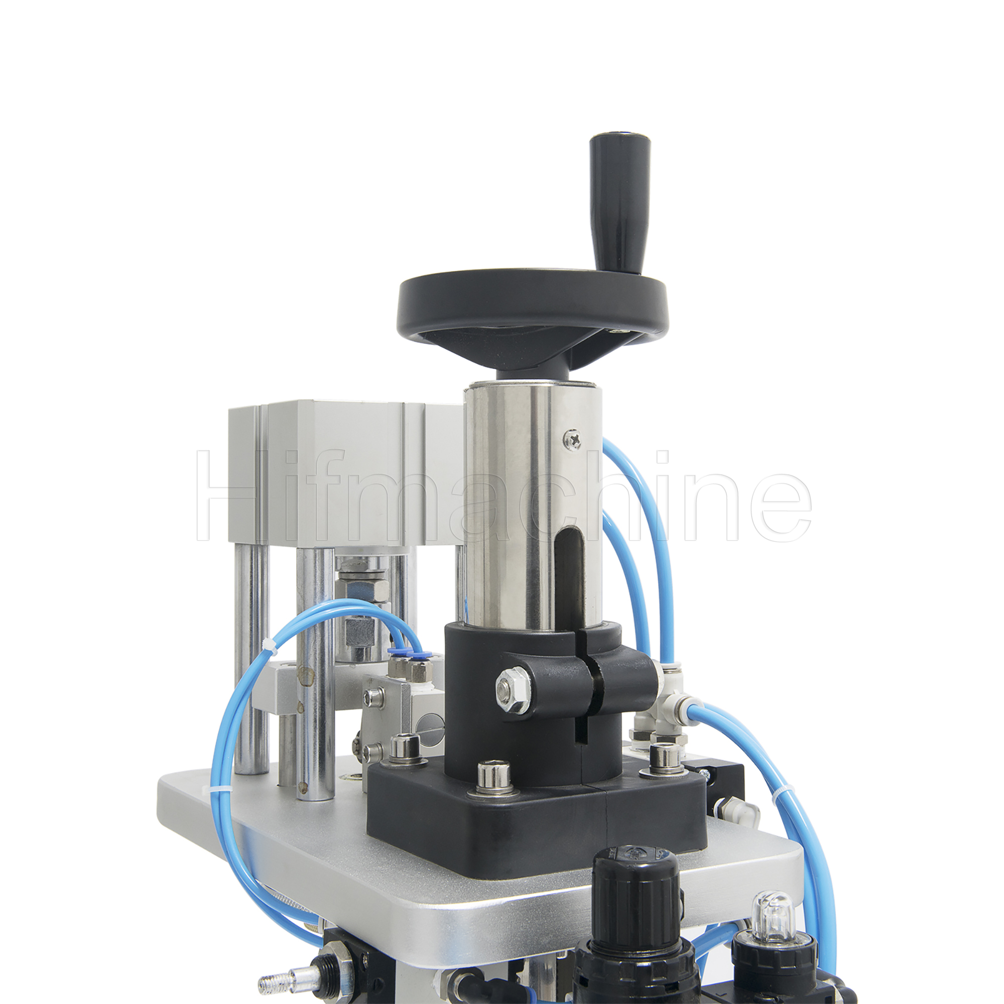 Die Glasflaschen-Verschließmaschine YGJ-18 basiert auf dem Prinzip eines importierten Maschinendesigns und stellt ein neues Produkt dar. Die Maschine wird mit Druckluft aus einem Kompressor betrieben, was den Vorteil bietet, dass sie auch in brennbaren und explosionsgefährdeten Arbeitsbereichen eingesetzt werden kann, ohne eine Gefahr für die Umgebung darzustellen. Es handelt sich um eine speziell für Parfümverschlüsse entwickelte Verschließmaschine. In der Regel erfolgt die Auslegung der Verschlusseinheiten nach den vom Kunden bereitgestellten Parfümflaschen und Bajonett- bzw. Sprühkopfverschlüssen; verschiedene Verschlussgrößen werden kundenspezifisch angepasst.
