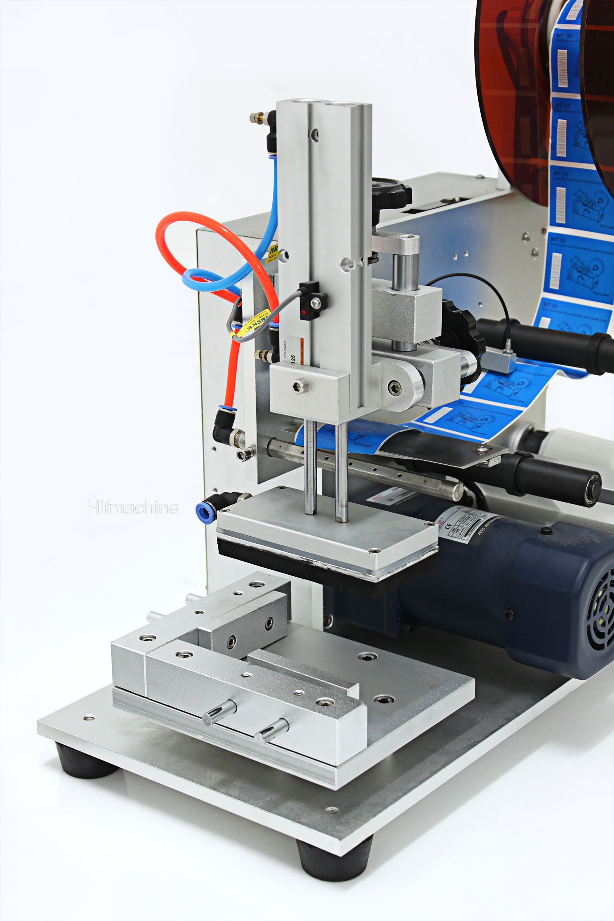 Die Maschine arbeitet mit einem hochpräzisen, intelligenten Lichtsensor (Elektroauge) und einer äußerst zuverlässigen speicherprogrammierbaren Steuerung (SPS/PLC) für das Abziehen, Ausgeben und Aufbringen der Etiketten. Selbstklebende Etiketten werden per Luftdruck an den Etikettierkopf angesaugt und anschließend auf das Produkt aufgebracht. Die Maschine ist zudem mit einer Druck-/Kodiereinheit ausgestattet und kann Etikettieren und Bedrucken gleichzeitig ausführen. Click to view our Code Printer Machine.