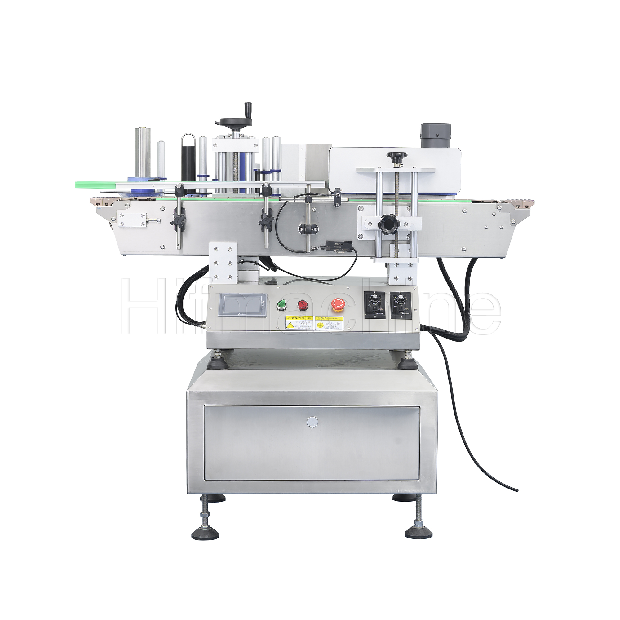 | Etikettiermaschine Auftragung des Etiketts auf die Flasche glatt und präzise mittels Walze |