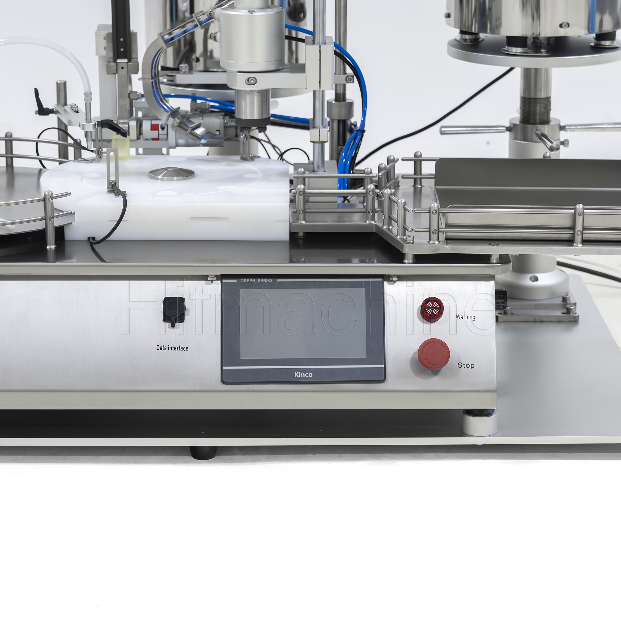 Die vollautomatische Tisch‑Füll‑ und Verschließmaschine für Fläschchen CGZ‑20 ist eine automatisierte Anlage, die für die Lebensmittel-, Drogerie‑ und Pharmaindustrie sowie verwandte Bereiche entwickelt wurde. Das Gerät folgt einem mechatronischen Design und ist mit einer fortschrittlichen SPS (programmierbare Steuerung) und einem Farb‑Touchscreen‑Bedienfeld ausgestattet, wodurch eine einfache Bedienung und hohe Prozessstabilität sichergestellt werden. Der Hauptarbeitsablauf umfasst Flascheneinzug, Prüfung, Befüllung, Verschluss/Versiegelung und Flaschenauswurf — diese Arbeitsschritte können kontinuierlich ausgeführt werden, was die Produktionseffizienz deutlich erhöht.