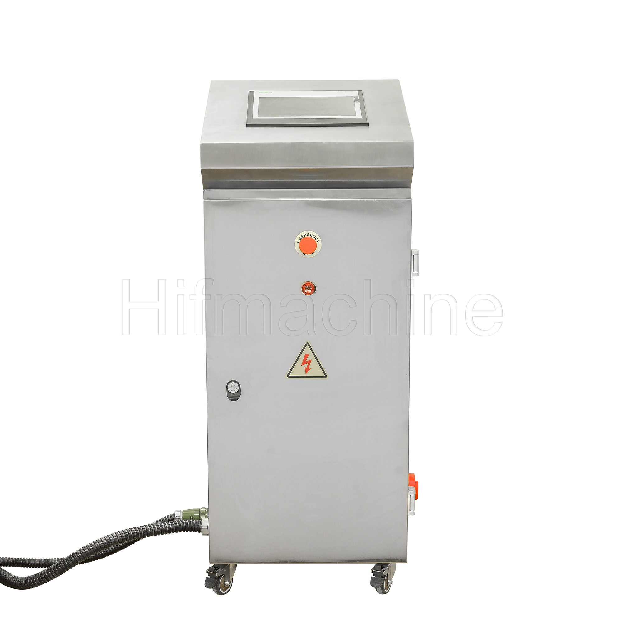 - PLC-Steuerung für zuverlässigen Betrieb. Touchscreen-HMI mit benutzerfreundlichen Bedienelementen: Produktionszähler, Hand-/Automatik-/Parametersetup-Modi, Alarme.
