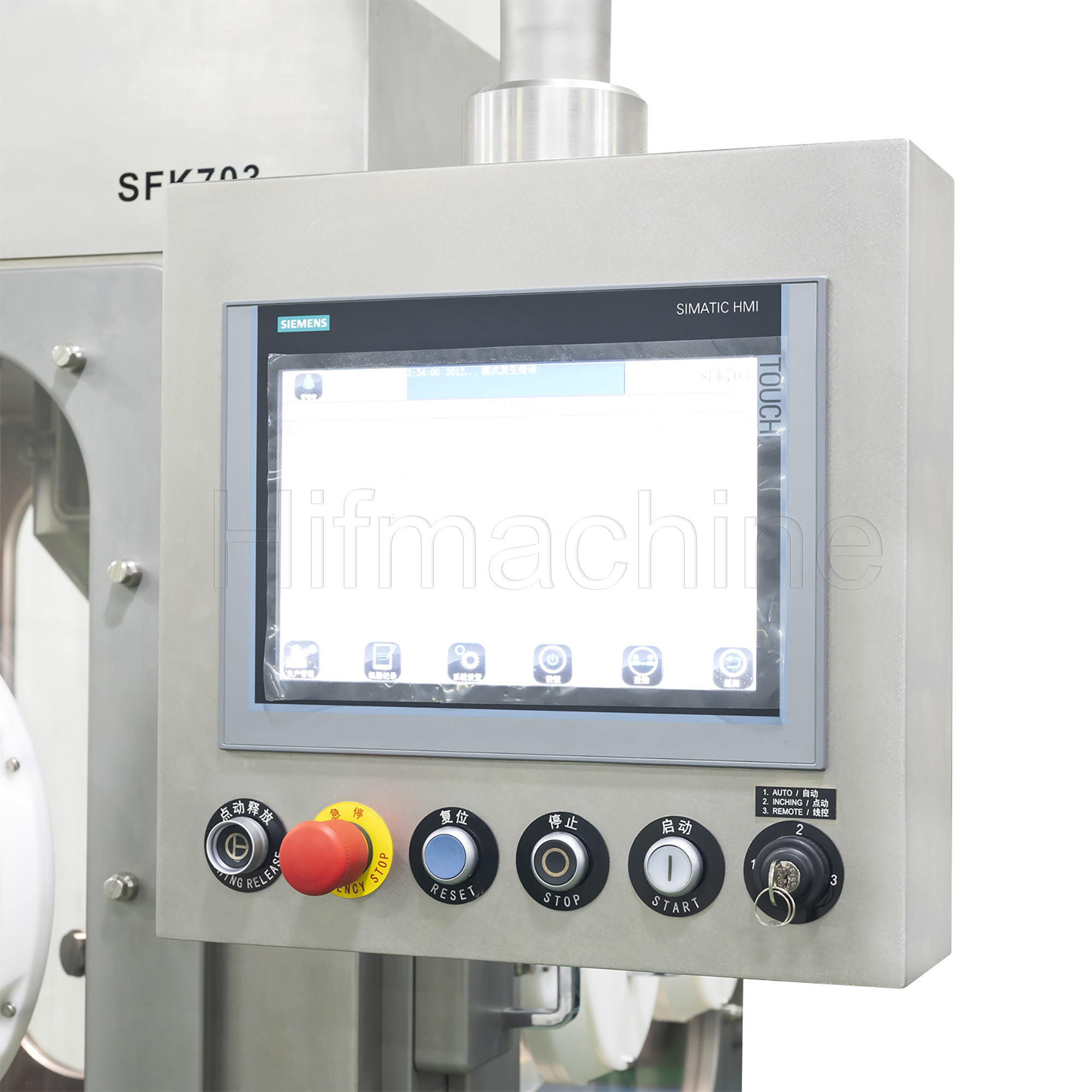 Die SFK‑703 vollautomatische Hartkapsel‑Befüllmaschine basiert auf einem international anerkannten, fortschrittlichen Designkonzept. Durch Feinjustage der Spaltmaße arbeitet die Maschine mit einem druckgesteuerten, hochpräzisen Dosierscheiben‑Füllsystem.