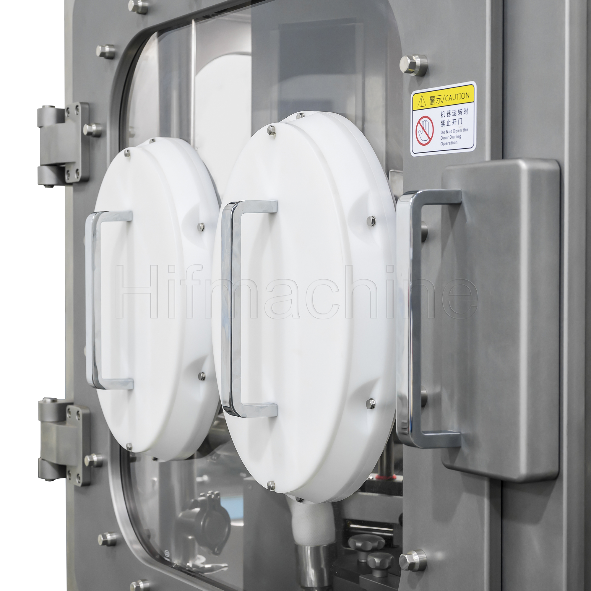 Das Gerätdesign entspricht vollständig den Anforderungen von cGMP und den FDA‑Spezifikationen. Es handelt sich um eine intelligente Lösung für die pharmazeutische Produktion, die Herstellung von Health‑Care‑Produkten sowie die Kapselproduktion in der Lebensmittelindustrie.