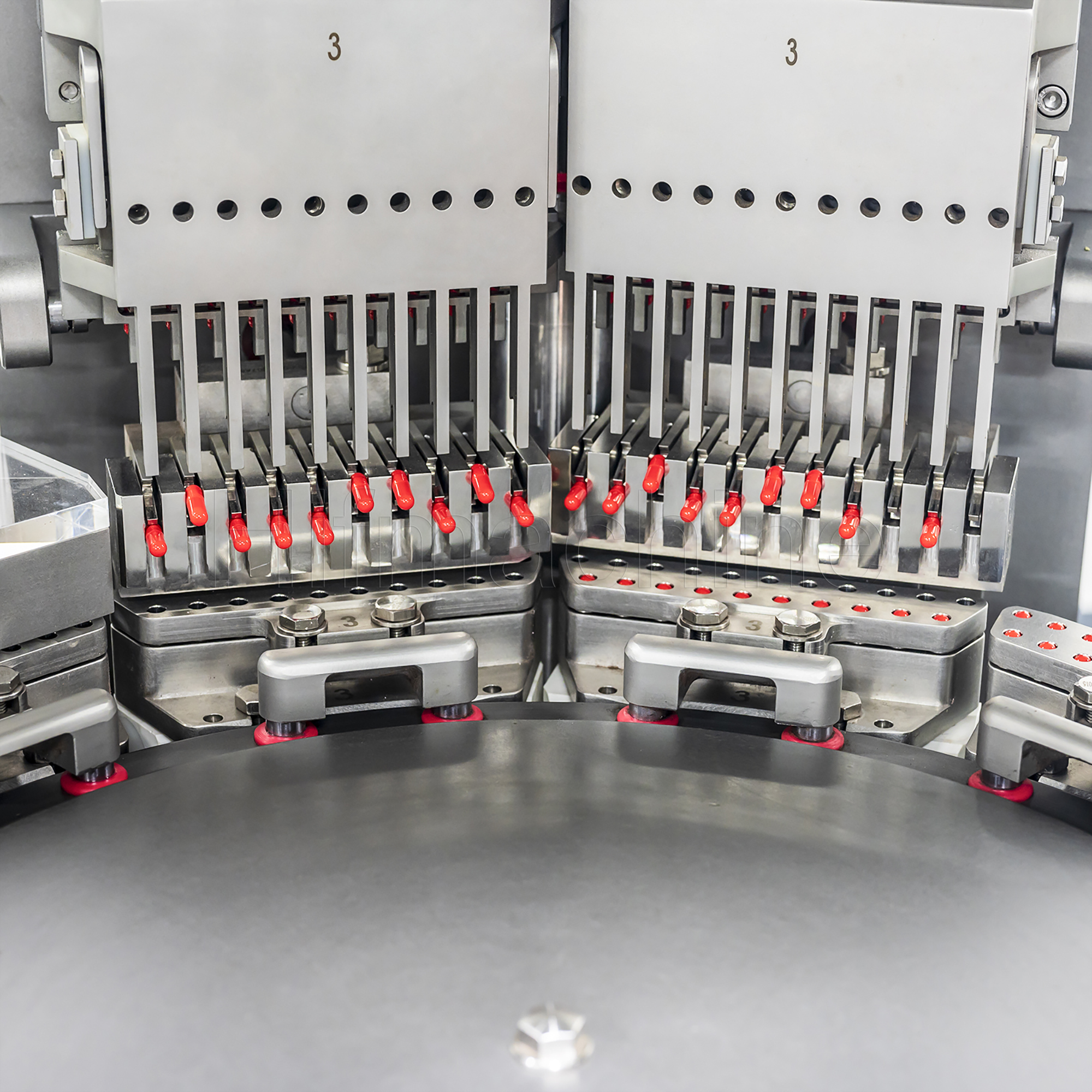 Die Konstruktion der Bauteile ist präzise, die Erscheinung ansprechend und funktional, der Betrieb läuft reibungslos. Werkzeuge/Matrizen können einfach und schnell gewechselt werden. Kapselsortierung, Trennung, Befüllung, Entnahme, Verschluss, Ausstoß, Reinigung und zahlreiche weitere Prozessschritte werden vollautomatisch ausgeführt.