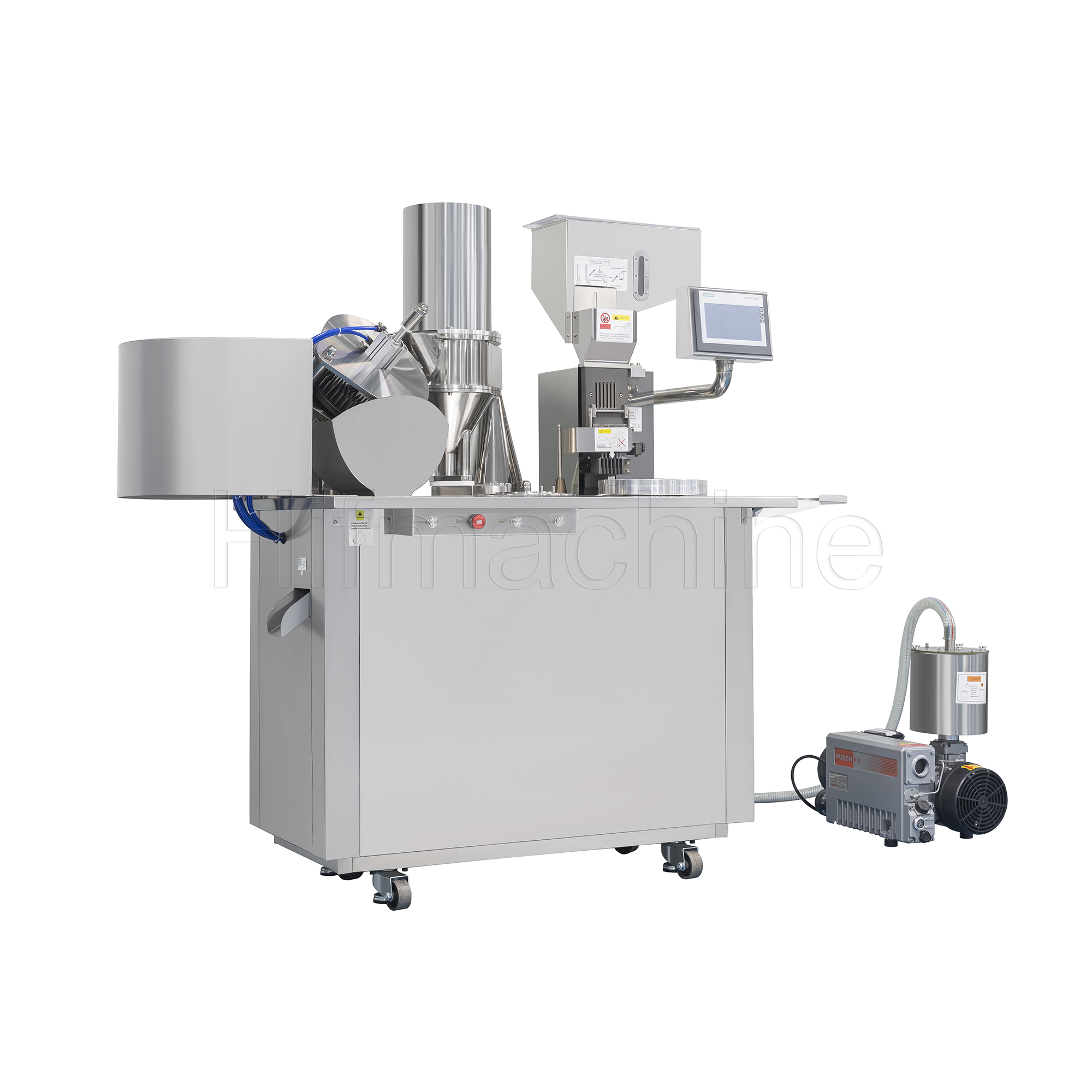 Die Füllmenge lässt sich über die Anzahl der Umdrehungen der Dosierscheibe einstellen. Der Pulverzuführer ist zusätzlich mit einer Förderschnecke ausgestattet, um die Pulverzufuhr zu regulieren. Diese Verbesserungen führen zu höherer Produktionsgeschwindigkeit, zur Einhaltung von cGMP-Anforderungen, zu präziseren Füllresultaten, sichererem Betrieb, einfacher Wartung, sehr geringer Geräuschentwicklung, leichterer Reinigung und reduziertem Arbeitsaufwand.