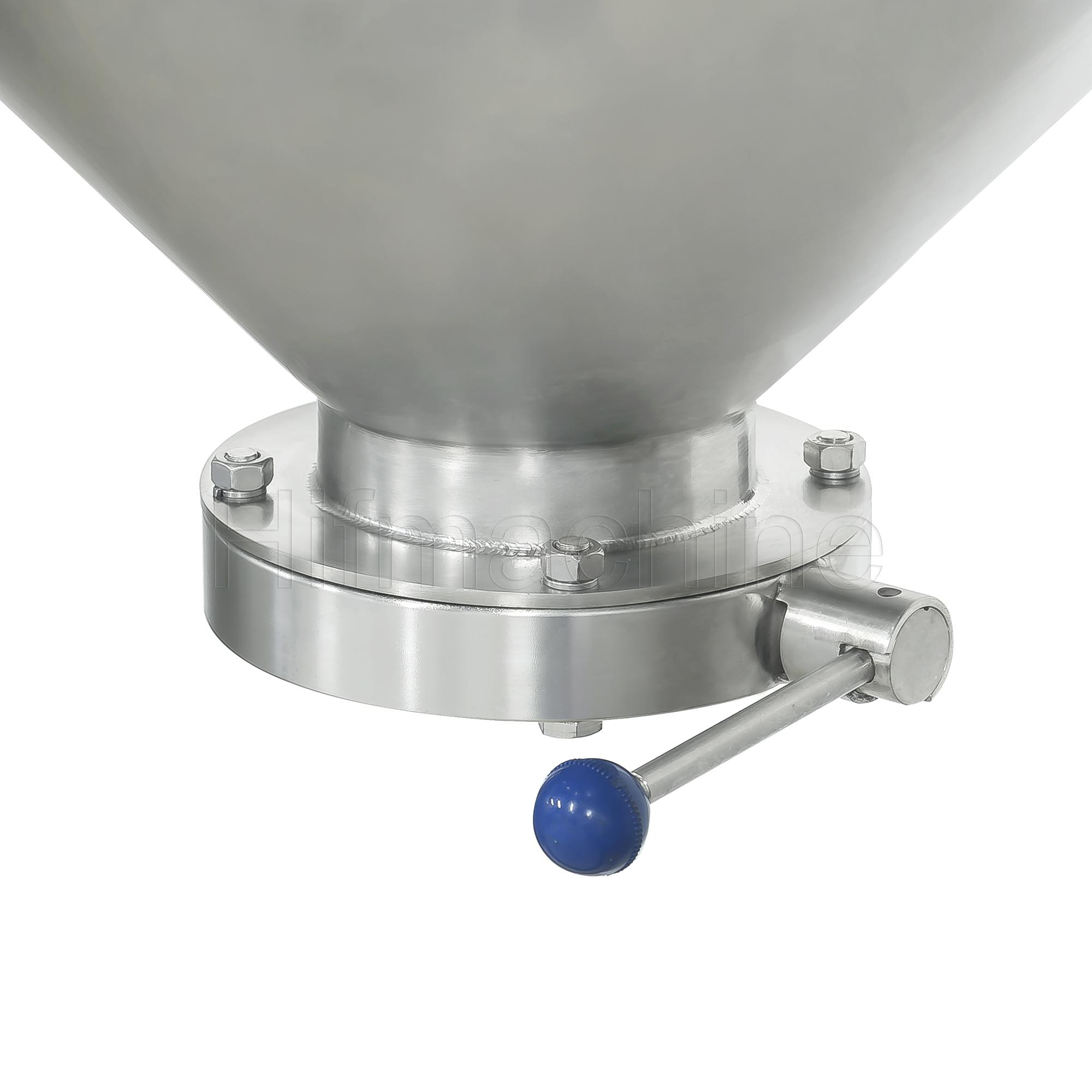 ● Mischbehälter: Doppelkegel-Sonderstruktur aus hochwertigem rostfreiem Stahl. Die inneren und äußeren Oberflächen wurden poliert und sind leicht zu reinigen, was den GMP-Anforderungen entspricht. Die Entladung des Materials wird durch das Schmetterlingsventil gesteuert. Das Material wird unter Schwerkrafteinwirkung gleichmäßig entladen, ohne Ansammlung und Kreuzkontamination.
