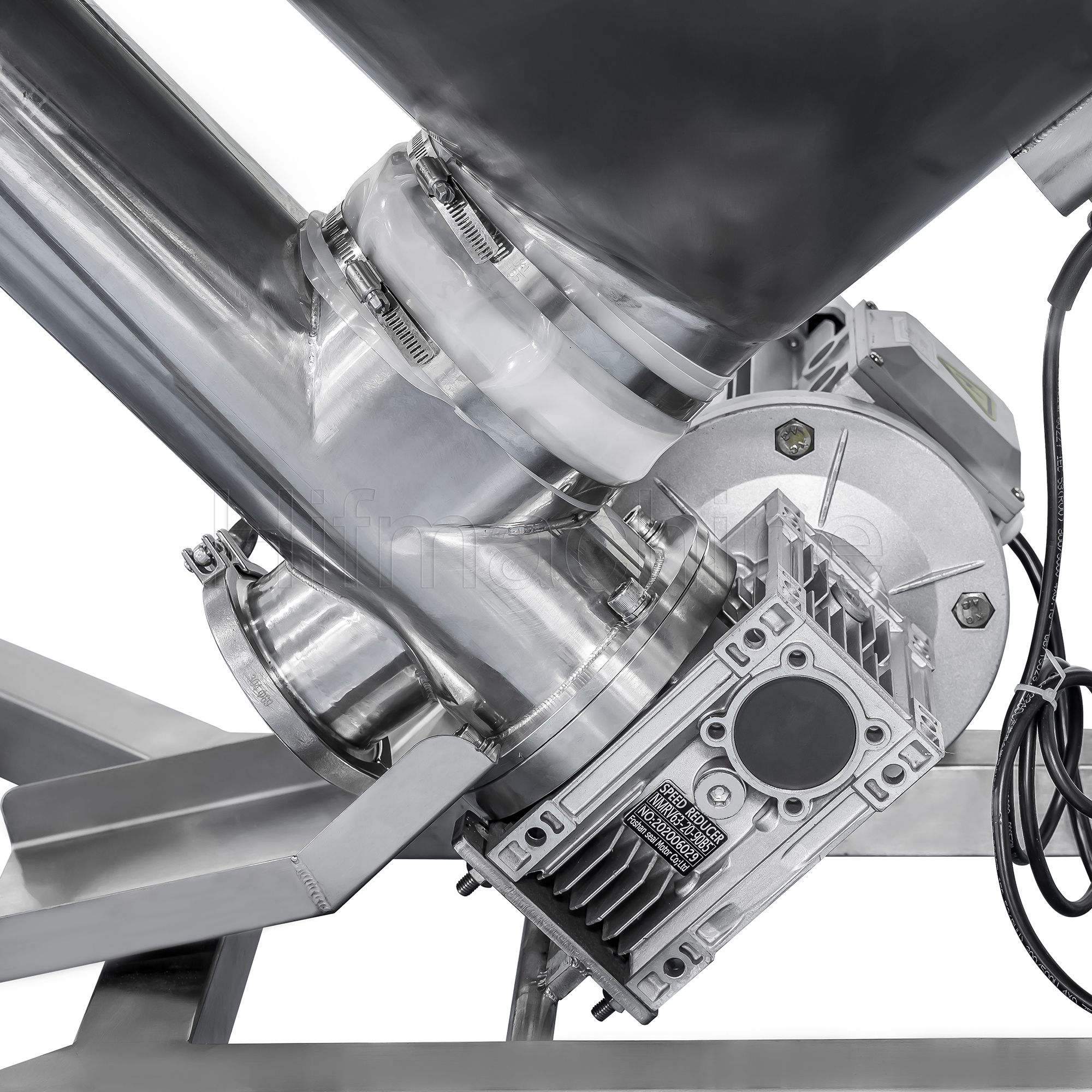 Der Schneckenförderer eignet sich zum Fördern verschiedener Pulver von Bodenniveau zu Verpackungs- oder Abfüllmaschinen sowie für unterschiedliche Anwendungen. Die Produktzufuhr des Förderers wird gesteuert, um den Füllstand im Produkttrichter konstant zu halten. Verfügbar ab einer Austragshöhe von 1.600 mm über dem Boden. Die Schnecke kann auch eigenständig für den Transport eingesetzt werden.