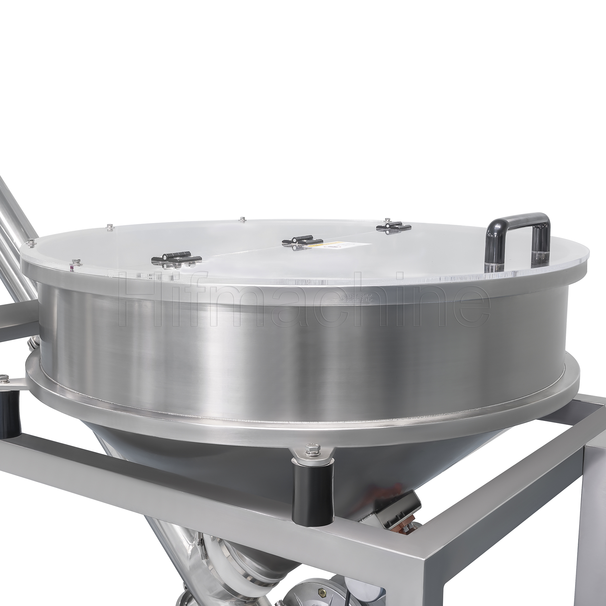 - Der Zuführtrichter kann mit zwei Elektromotoren ausgestattet werden: Zuführmotor & Vibrationsmotor, separat gesteuert mit variabler Geschwindigkeit.