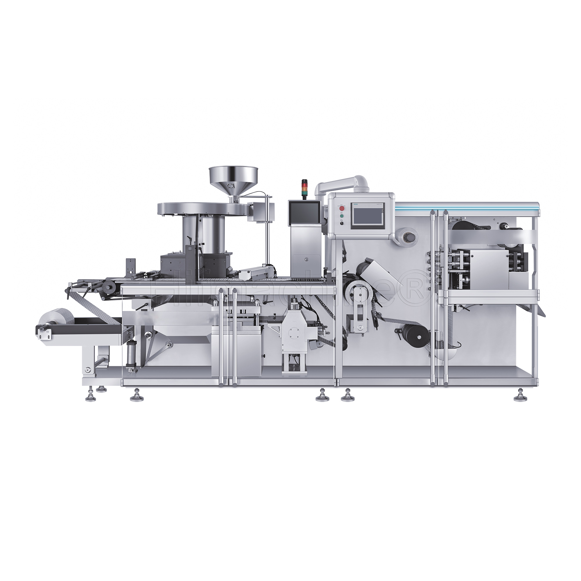 Esta máquina de blíster de alta velocidad está equipada con alimentador especial para comprimidos de formas irregulares y punzonado sin bordes, lo que mejora significativamente la eficiencia de producción. Cuenta además con una alta frecuencia de punzonado, bajo consumo energético, movimientos precisos y estables, y cambio rápido del molde.