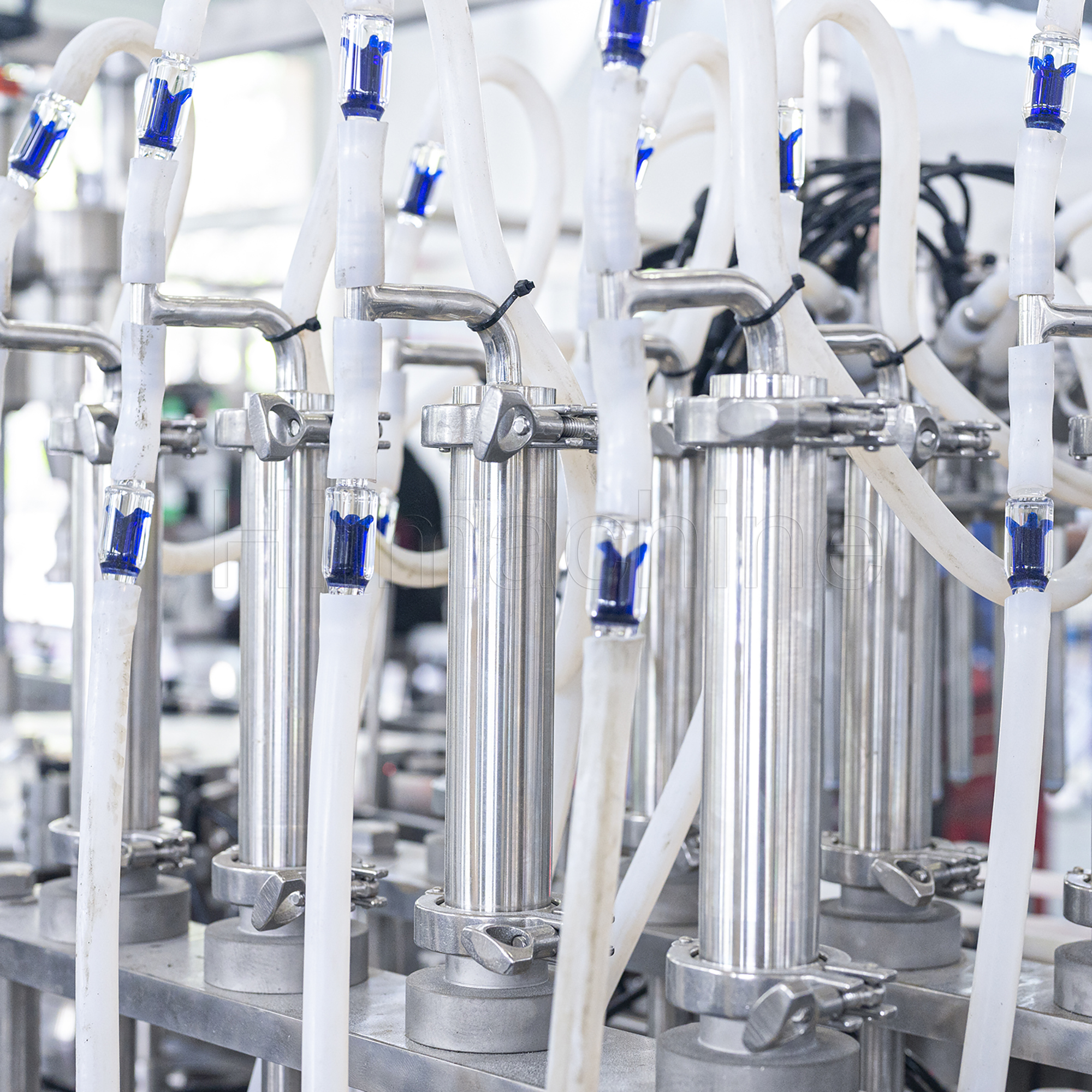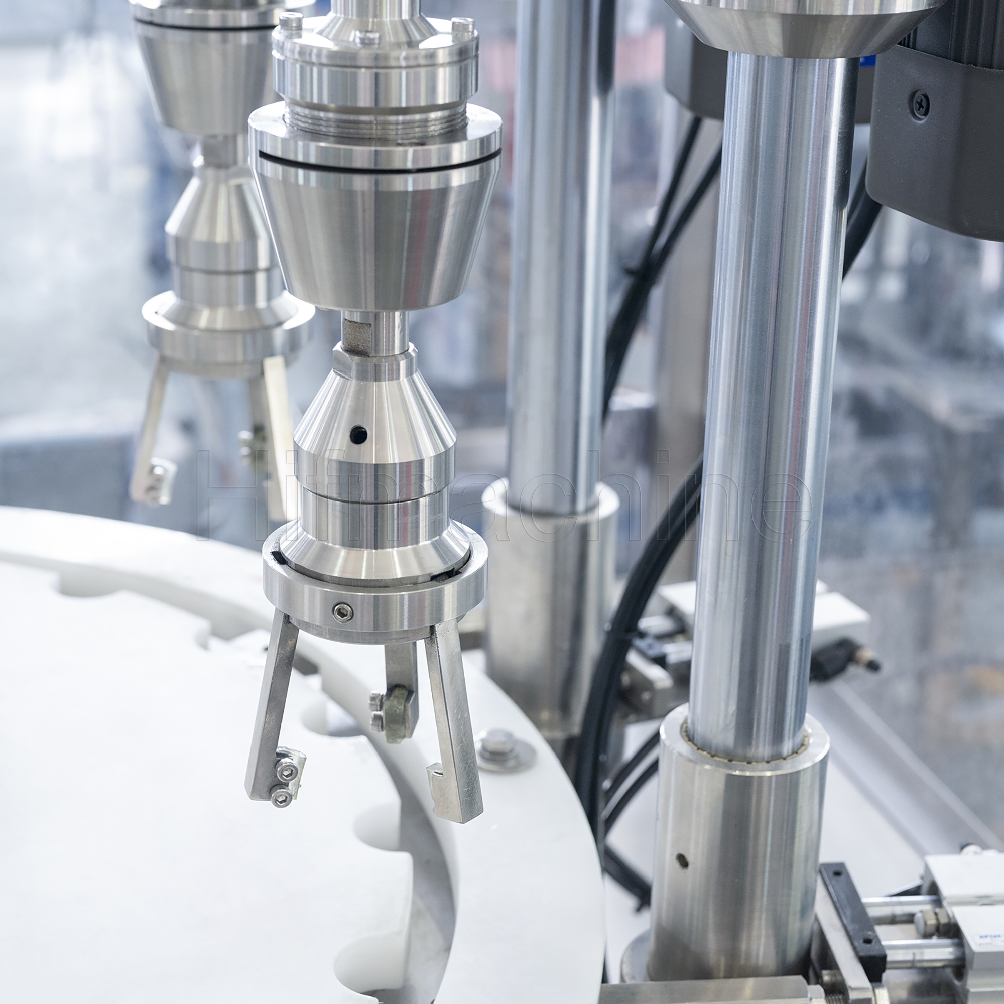 La máquina dosificadora con posicionamiento por disco y atornillado de tapas es adecuada para diversas especificaciones de llenado. Incorpora un sistema lineal de llenado con 8 cabezales, alimentación por disco vibratorio, tapado por presión, posicionamiento mediante disco y atornillado de tapas, con una estructura compacta y razonable. La estructura de llenado utiliza bombas de pistón accionadas por varillas, y las piezas de transmisión están fabricadas con acero de alta calidad, lo que permite una fácil integración con otros equipos para formar una línea de producción. La máquina está equipada con una carcasa protectora fabricada con panel de PC y marco de acero inoxidable 304#.