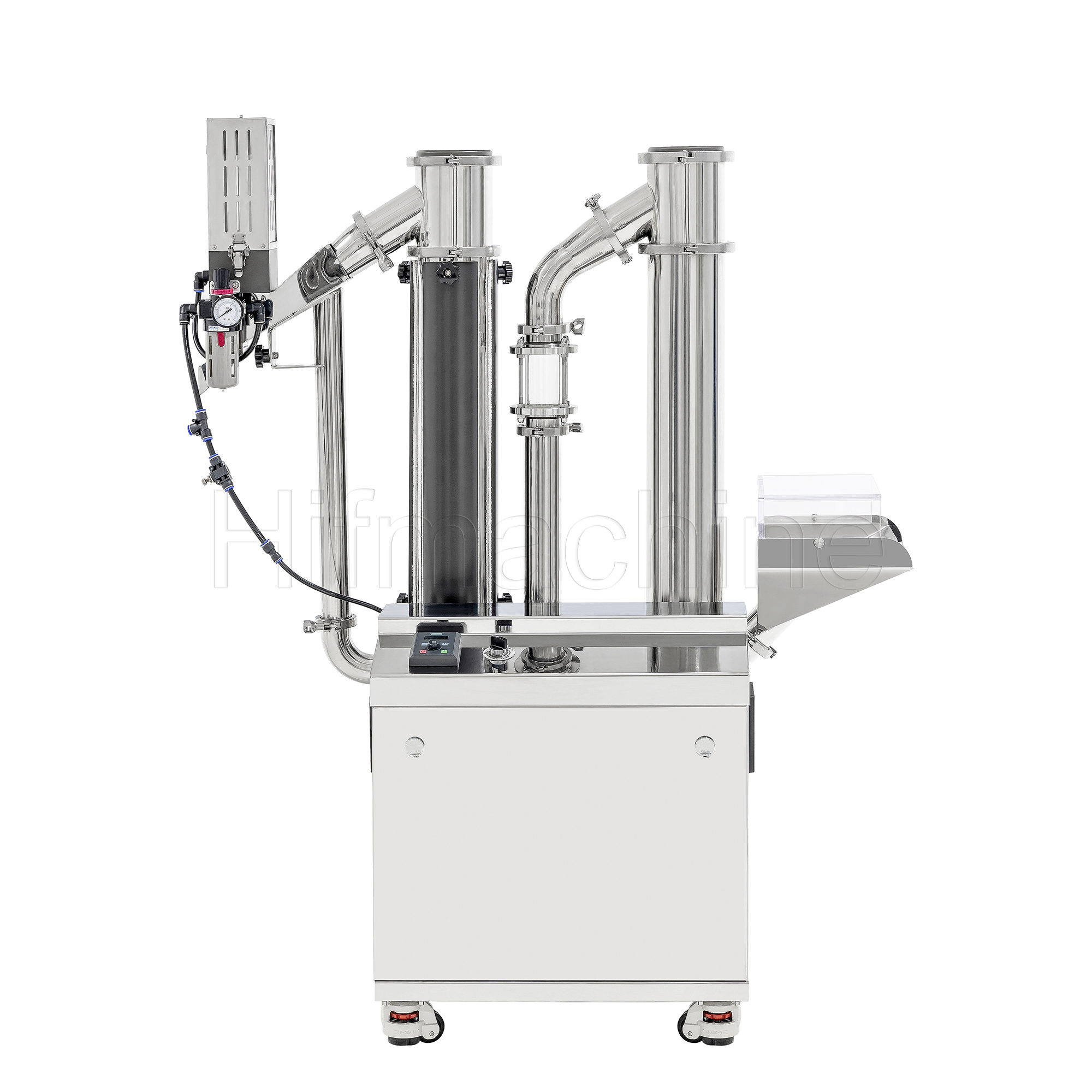 La máquina pulidora de cápsulas LSV-C200 combina dos funciones: el pulido y elevación de cápsulas. La entrada puede conectarse con cualquier modelo de máquina dosificadora de cápsulas, mientras que la salida puede conectarse con una clasificadora de cápsulas y un detector de metales, logrando así una línea completa de producción que incluye pulido, elevación, clasificación y detección de cápsulas.