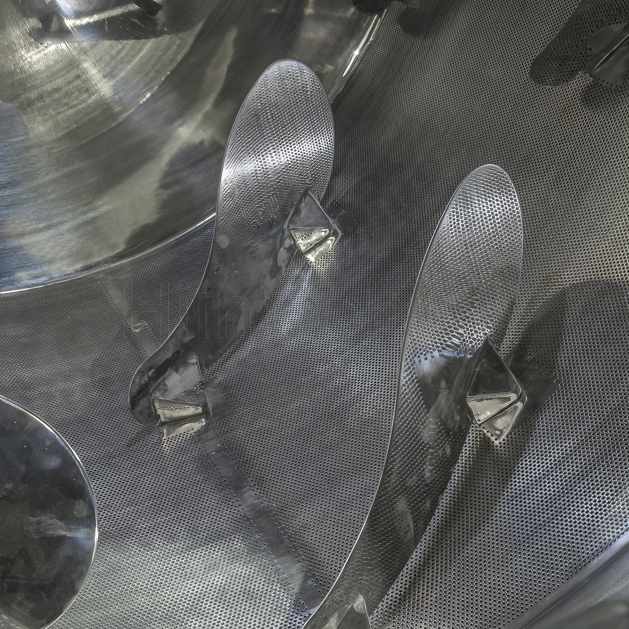 Máquina principal: Compuesta por una cámara operativa cerrada, tambor de recubrimiento tipo tamiz, agitador, disco de lavado, dispositivo de accionamiento, válvula de entrada/salida de aire y puerta lateral (la puerta lateral utiliza muelle de gas, lo que facilita su apertura y reduce el esfuerzo requerido).