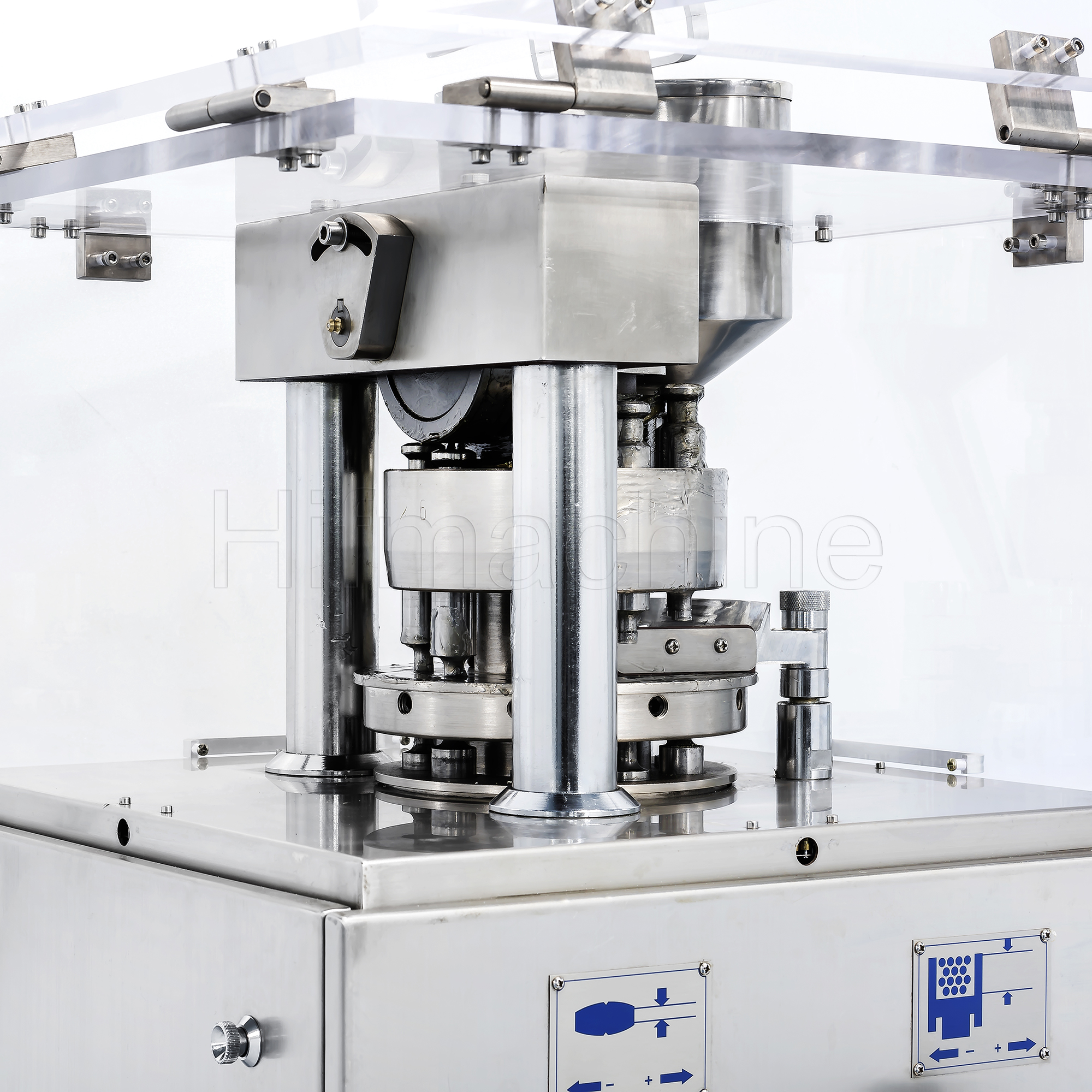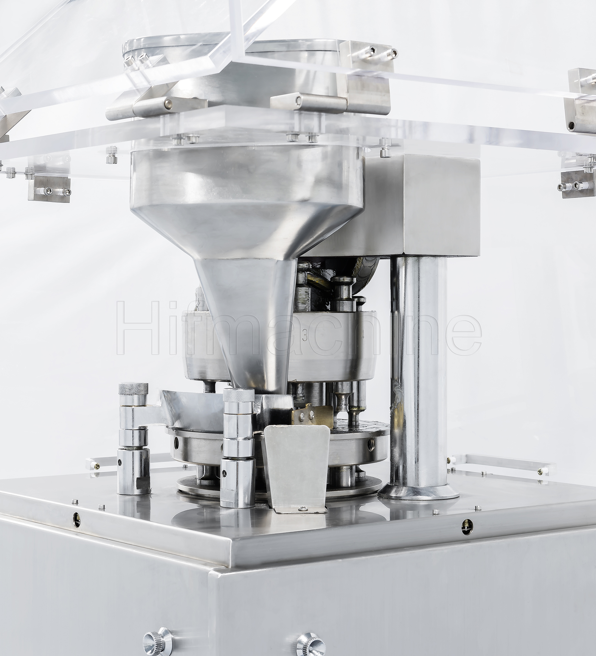 - A través de la ventana transparente del alimentador, puede observarse en cualquier momento el proceso de elaboración de los comprimidos. La ventana se puede abrir fácilmente para facilitar su limpieza y mantenimiento.
