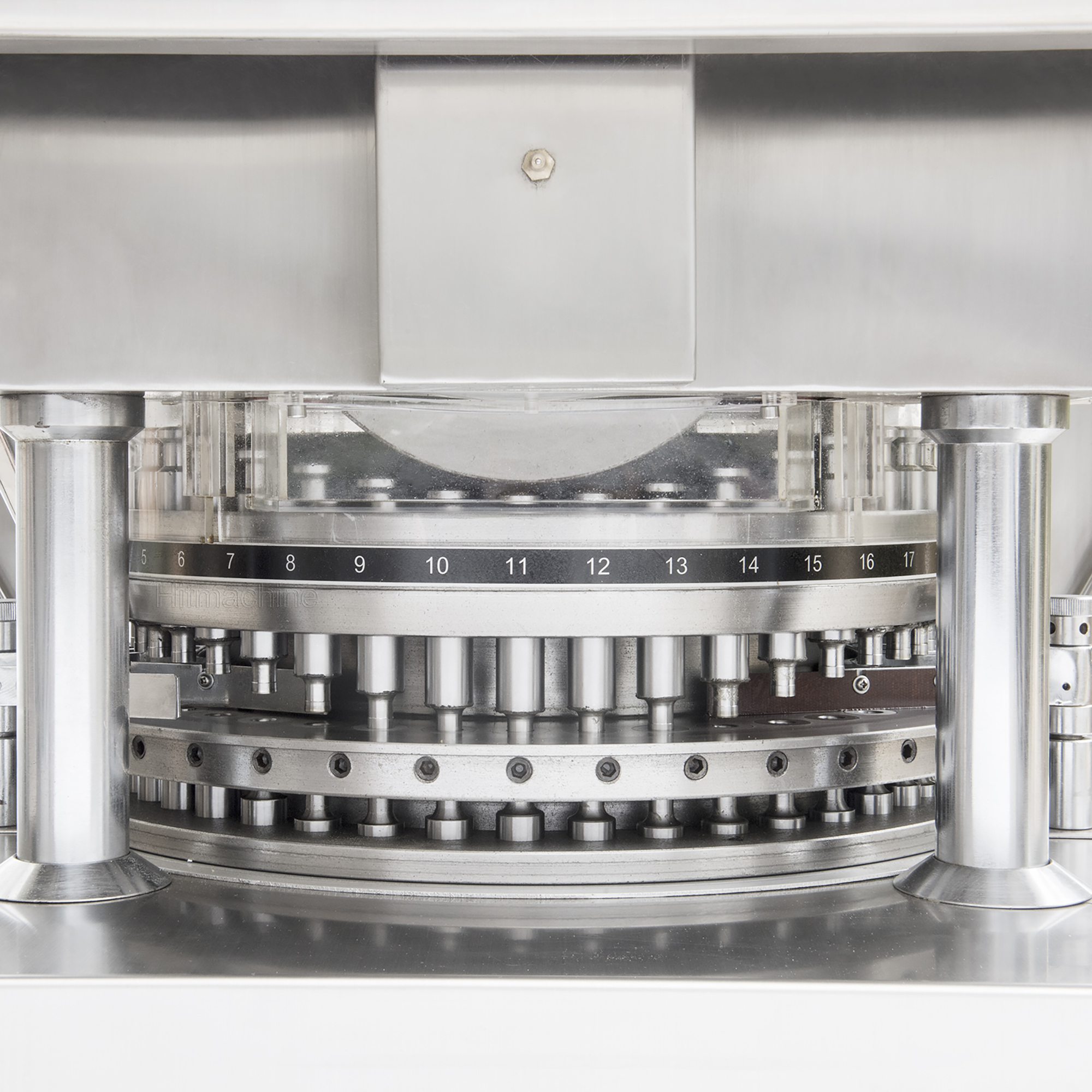 Esta máquina dispone de rotación automática, conversión de frecuencia y regulación de velocidad, realizando de forma continua la prensa de tabletas. Principalmente se emplea en la fabricación de tabletas en la industria farmacéutica, también se aplica en los sectores químico, alimentario, electrónico y otros para comprimir materias primas granulares en tabletas.