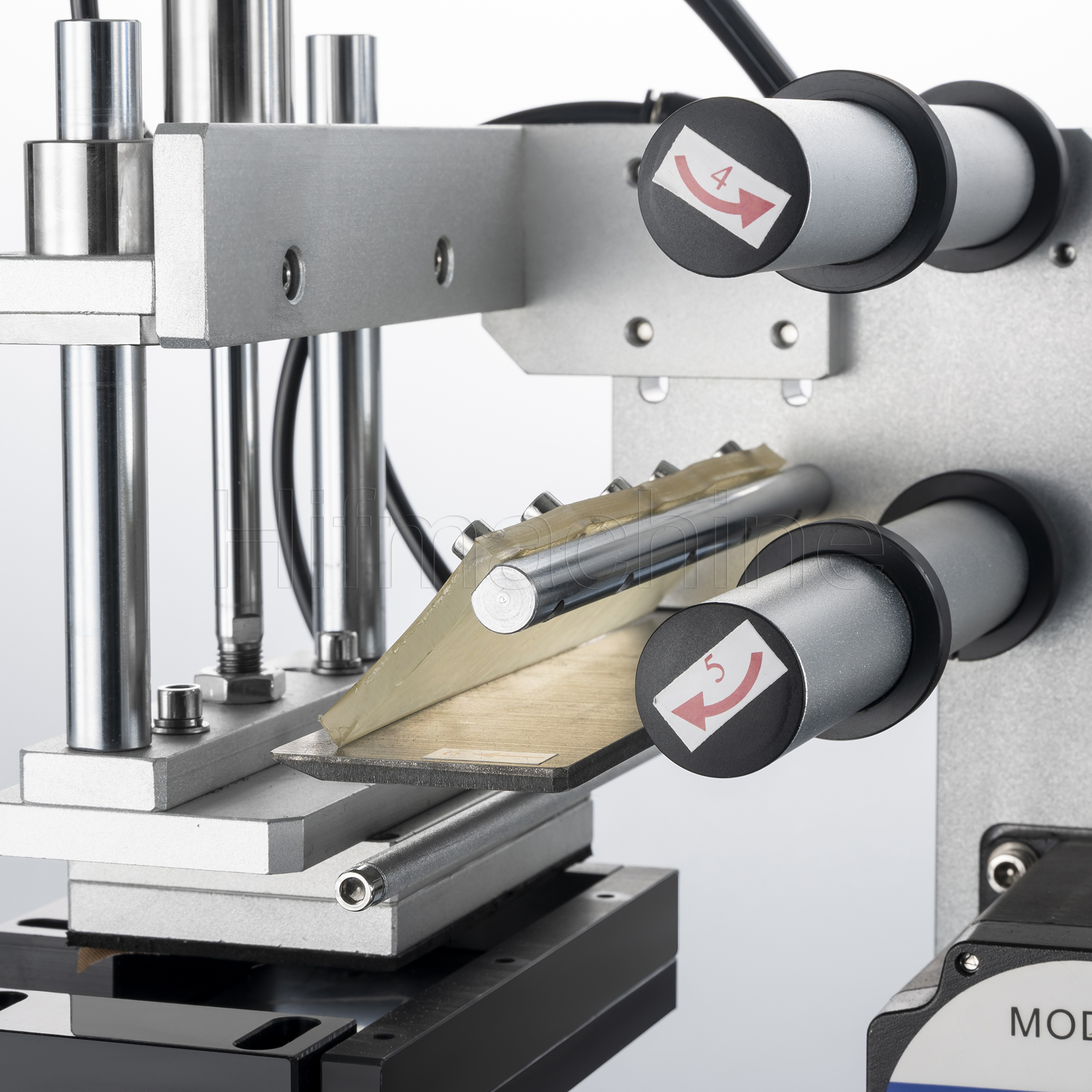 Устройство относится к полуавтоматическим этикетировочным машинам и предназначено для захвата и нанесения этикеток на все виды плоских поверхностей изделий. Например: флаконы для косметики, упаковочные коробки, пластиковые крышки и т. д. При замене механизма подачи этикетки возможна маркировка неровных поверхностей — вогнутых, изогнутых и других форм. При настройке соответствующих элементов управления можно выполнять этикетирование изделий сложной геометрической формы. Машина совместима с цветными ленточными принтерами или струйными принтерами — это позволяет наносить на этикетку дату выпуска продукции и системные номера, реализуя интеграцию печати и этикетирования в едином процессе. Может использоваться в сочетании с различными производственными линиями.